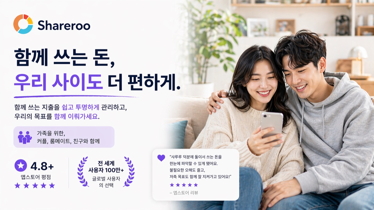 “동거를 시작하면서 돈 관리가 스트레스였는데, Shareroo로 더치페이가 자동화되어 전혀 싸우지 않게 됐어요.”